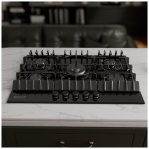 Cooktop a gás 5 bocas Gelincare inox preto embutir conversível GN/GLP proteção por termopar 110V