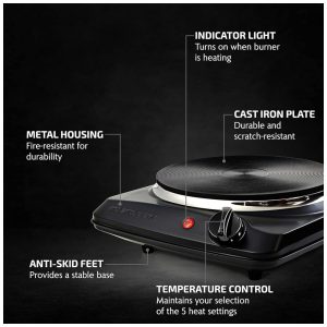 Cooktop Elétrico Karinear de 2 Bocas 110V 30 cm Tampo de Vidro com Padrão Bonito – Preto/Cinza
