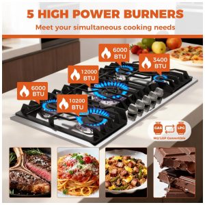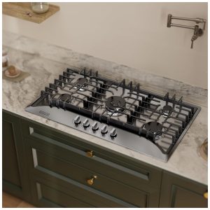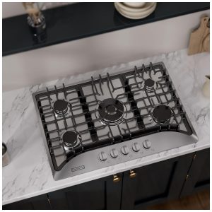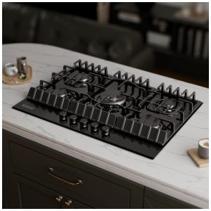 Cooktop a gás 91cm Empava vidro preto 5 queimadores SABAF selados 49000BTU dual fuel GN/GLP 110V