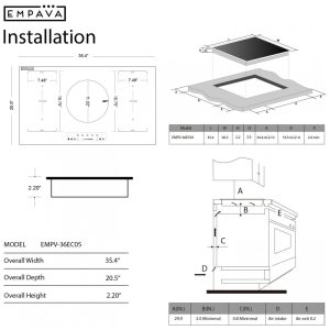 Cooktop elétrico de indução 91cm Empava 5 zonas vidro preto Bridge‑SYNC RapidHeat 11400W 220V