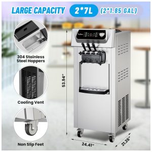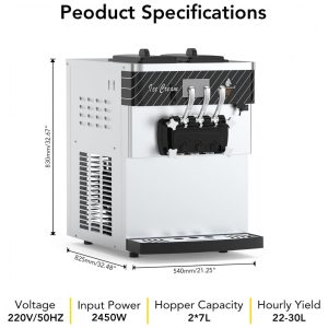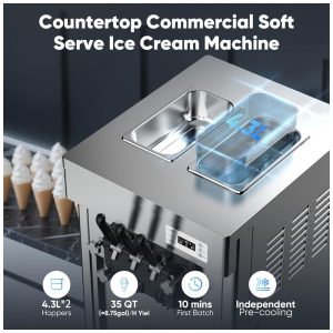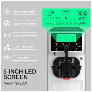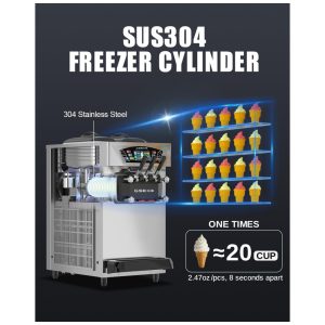 Máquina de Sorvete Soft Comercial GAOMON Prata 2+1 Sabores Alta Produção 22-28L/h 2200W