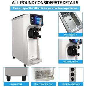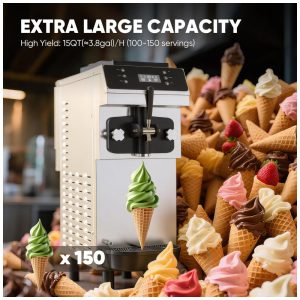 Máquina de Sorvete Profissional 15L por Hora com 1 Bico e Tela LCD 110V 1050W GSEICE Branca