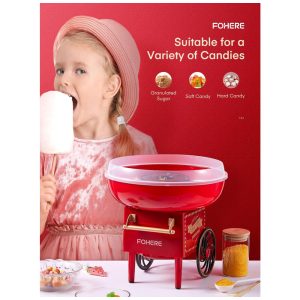 Máquina de Algodão Doce Elétrica com Colher de Açúcar e 10 Cones 110V FOHERE Vermelho