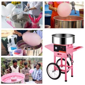 Carrinho de Algodão Doce Elétrico Profissional em Aço Inoxidável 110V 1000W TIANAI Rosa