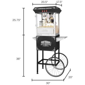 Máquina de Pipoca Vintage Style Popper com Carrinho e Chaleira Vermelha OLDE MIDWAY 028g