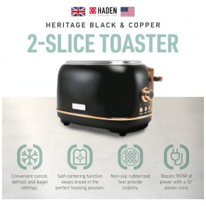 Torradeira HADEN Heritage inox 2 fatias preta e cobre com controle de tostagem ajustável 900W 110V