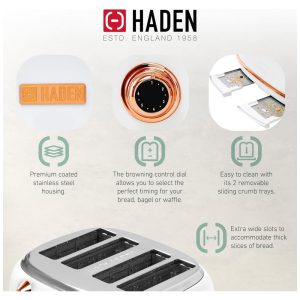 Torradeira HADEN Dorset inox 4 fatias marfim com fenda larga e controle de tostagem 1500W 110V