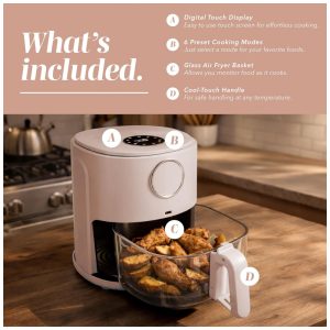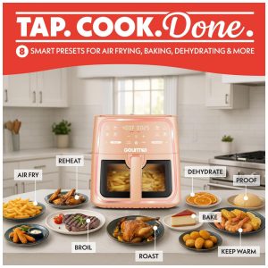 Charmi AirMaster Air Fryer 5 Quartos Design Retrô Tela Touch Digital e 8 Predefinições de Cozimento