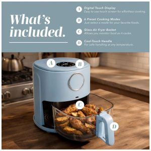 Air Fryer Digital Generic 6 Quartos com Tecnologia TurboCrisp Display Digital e Limpeza Fácil