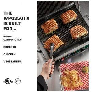 Sanduicheira Elétrica Antiaderente 2 Fatias Aço Inox 1800W 110v WARING WFG250 Prateado