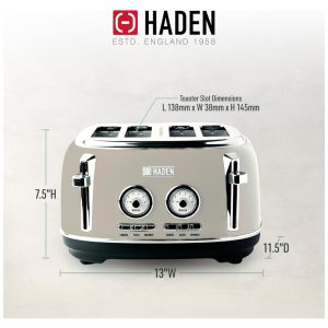 HERITAGE Torradeira de 4 Fatias com 6 Níveis de Tostagem 1500W Branca 110v HADEN 75013 Branco