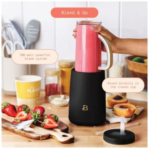 Liquidificador portátil NexaEase 600ml preto com case térmico e livro de receitas recarregável USB-C