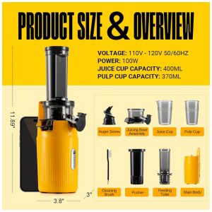 Centrifuga de Frutas com Baixa Velocidade de 60 RPM e Fácil de Limpar 110V 100W Ventray Amarelo