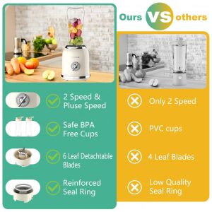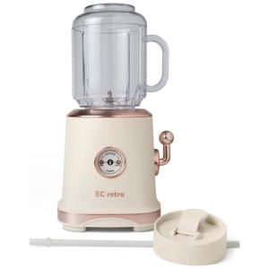 Liquidificador Retrô ECretro Bege Amarelo Claro 300W Copo Portátil 600ml 2 Velocidades 110V