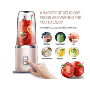Mini Liquidificador Portátil 414mL com Carregamento USB e 6 Lâminas 200W Paramexview Rosa