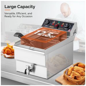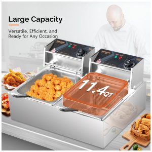 Fritadeira Elétrica Dupla Profissional 21 Litros de Capacidade Aço Inoxidável 110V 5000W ROVSUN