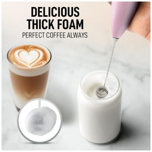 Espumador Elétrico de Leite a Bateria com Suporte ZULAY KITCHEN Twin Whisk 12500 RPM Rosa