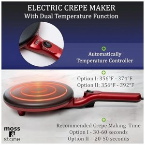 Moss Stone Máquina de Crepe Elétrica antiaderente de Aço inoxidável 800W 110V Vermelha