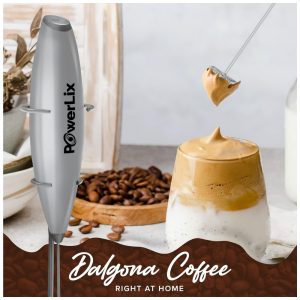 Espumador Elétrico de Leite em Aço Inoxidável a Bateria com Suporte POWERLIX Grey Prateado