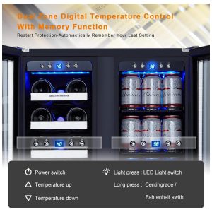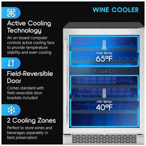 Koolatron Wine Fridge Wine Cooler 24 Garrafas Armário para Champanhe Vinho Branco e Tinto Dupla Zona de Resfriamento Autônomo para Bar Casa