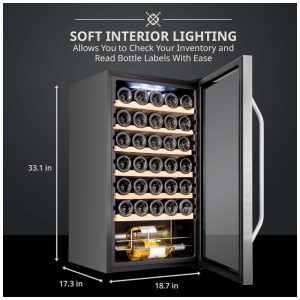 Koolatron Wine Fridge: Refrigerador de Vinhos Embutido de 7 Garrafas Adega de 18L para Champanhe e Vinhos Tinto e Branco Design Slim