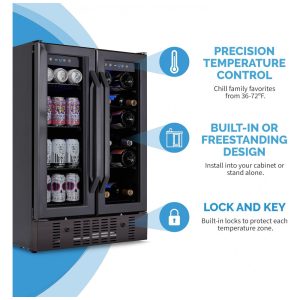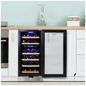 Koolatron Wine Fridge Wine Cooler 24 Garrafas para Champanhe Vinho Branco e Tinto Adega Dual Zone Autônoma para Bar Casa Cozinha Porta de Vidro