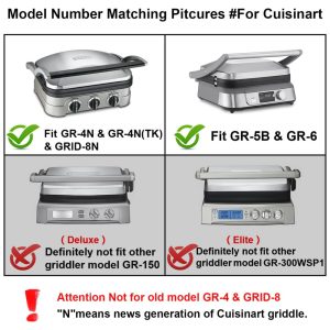 Placas de Waffle para Cuisinart GR 4N GR 5B GR 6 e GRID 8N Alumínio GVODE G1201A Preto