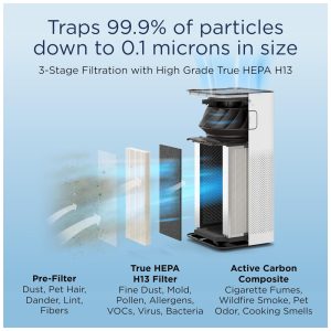 Purificador de Ar com Filtro HEPA com Painel de Controle Digital Área 19 m2 TREDY TD 1500 Branco