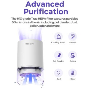 Purificador de Ar para Quarto Purificador de Ar Mini para Mesa Pessoal Purificador de Ar com Filtro HEPA para Dormitórios AnimaisRosekm.