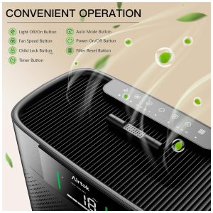 Purificador de Ar para Casa de Grande Ambiente até 1208 m² com Monitor de Qualidade do Ar PM2.5 Modo de Sono HEPA AromaterapiaAirtok