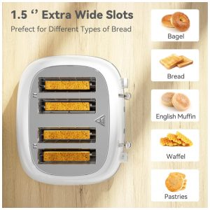 Torradeira Retro de 4 Fatias com 6 Níveis de Tostagem e Painel Duplo 110V 1650 W KITCHMIX Branca