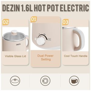 Panela Elétrica de Aço Inoxidável Capacidade 1.6 L com Controle de Temperatura 600W DEZIN Beje