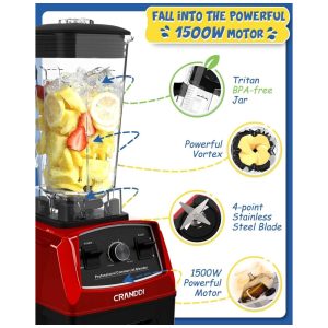 Liquidificador Profissional Capacidade 2L 9 Velocidades 1500W 110v CRANDDI YL 010 R Vermelho