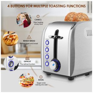 Torradeira de 2 Fatias com 6 Níveis de Tostagem em Aço Inoxidável 800W 110v JEWJIO T 36UB Prateado
