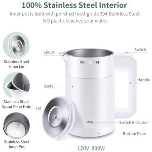 Chaleira Elétrica 06 L com Desligamento Automático Aço Inoxidável 110V 800W MEISON Branca