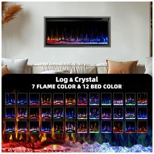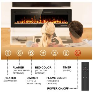 Lareira Elétrica de Embutir A45x152L cm com Controle Remoto e Digital 110V 1500W Eueiriup Preta