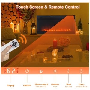 Lareira Elétrica de Embutir A67x101L com Controle de Temperatura 110V 1500W Touchstone 80052 Preta