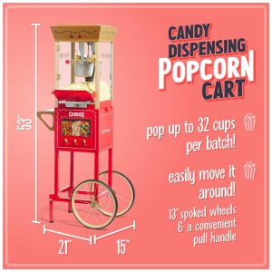 Máquina de Pipoca Bonnlo com Carrinho e Rodas Chaleira Aço Inox 304 de 8oz Luz LED 850W Preto