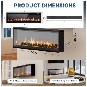 Lareira Elétrica EUHOMY de 1524 cm Embutida na Parede ou Autônoma com Controle Remoto Aquecedor de Lareira Ultrassônica com Chama Ajustável