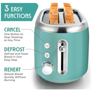 Torradeira Elétrica Retrô 2 Fatias com 7 Níveis de Tostagem em Aço Inoxidável 110V Mueller Azul