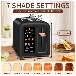 Torradeira Elétrica 2 Fatias com Tela LCD Digital e 4 Funções 110V 1350W SEEDEEM Preta