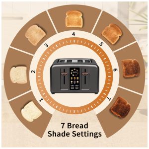 Torradeira Elétrica de 4 Fatias com Display LCD Digital 6 Níveis de Tostagem 110V 1800W SEEDEEM Cinza
