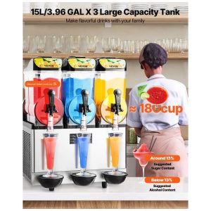 Máquina de Frozen Drink Comercial VEVOR 3 Tanques Triplos de 15L Aço Inoxidável Ideal para Margaritas Smoothies e Slushies