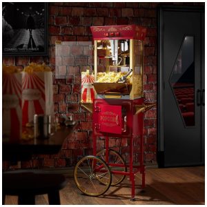 Máquina de Pipoca com Carrinho e Chaleira de 028g Rende até 32 Xícaras Colher de Aço Inclusa ROVSUN