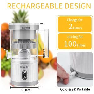 Espremedor Elétrico Portátil Recarregável USB para Frutas Cítricas 110V 80W SUPCOOKI Branco