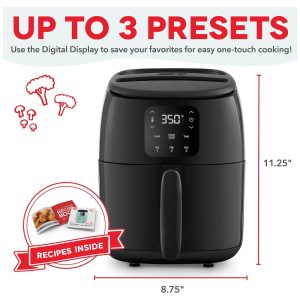 Fritadeira Elétrica AirFryer Digital Capacidade 2.4L 1000W 110v DASH DCAF260GBBK02 Preto