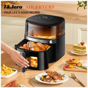Air Fryer 57L com Controle Digital de Predefinições Cesta Antiaderente 110V 1500W TJero Preta
