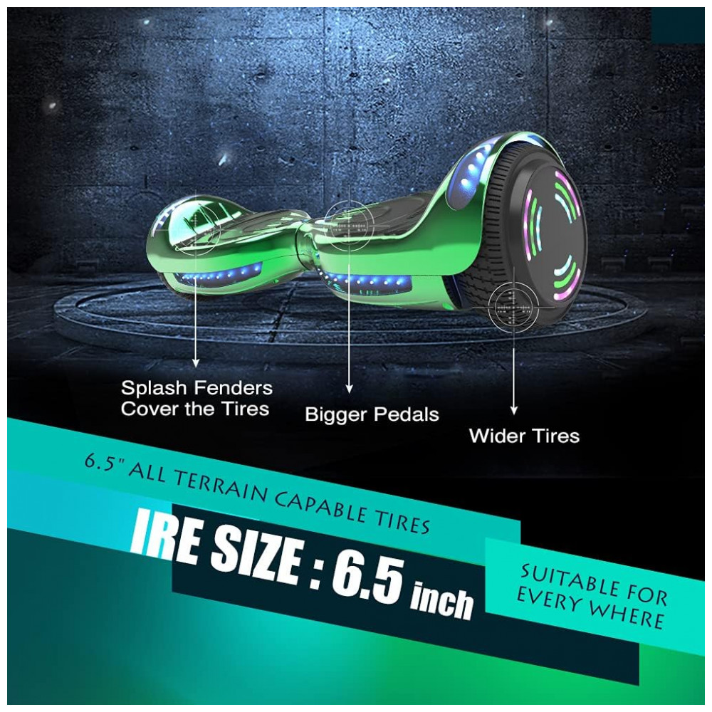 Hoverboard com Assento para Crianças e Adultos, Auto Balanceamento 6,5 e 8,5 polegadas, Bluetooth com Luzes LED Coloridas e Kart – Verde Velocidade
