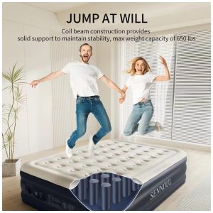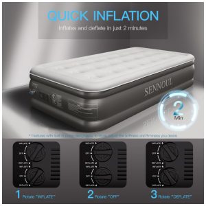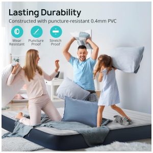 Colchão Inflável Solteiro para viagens camping com bomba dupla embutida ENERPLEX Luxury Branco