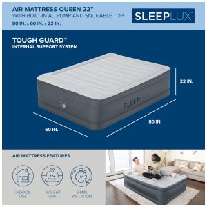 Colchão Inflável Casal Queen com Bomba Embutida Para até 340KG SLEEPLUX 69093E Cinza